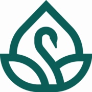 conscience). Le cou du cygne forme un “S” qui ancre le nom et les valeurs de sérénité, soin, progression.